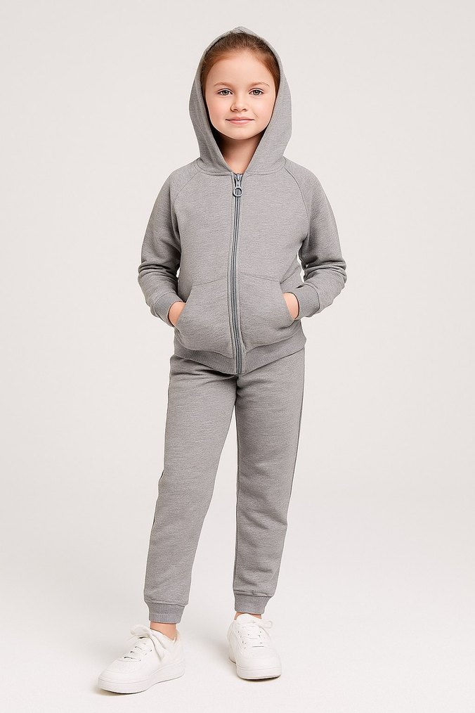 Kız çocuk gri kapüşonlu fermuarlı üst ve eşofman altından oluşan, yumuşak ve sıcak kumaştan yapılmış takımdır. Yuvarlak yaka, uzun kollu ve rahat kesimlidir. ♀️ 6-7 Yaş 7-8 Yaş 8-9 Yaş 9-10 Yaş Bedenleri mevcut.