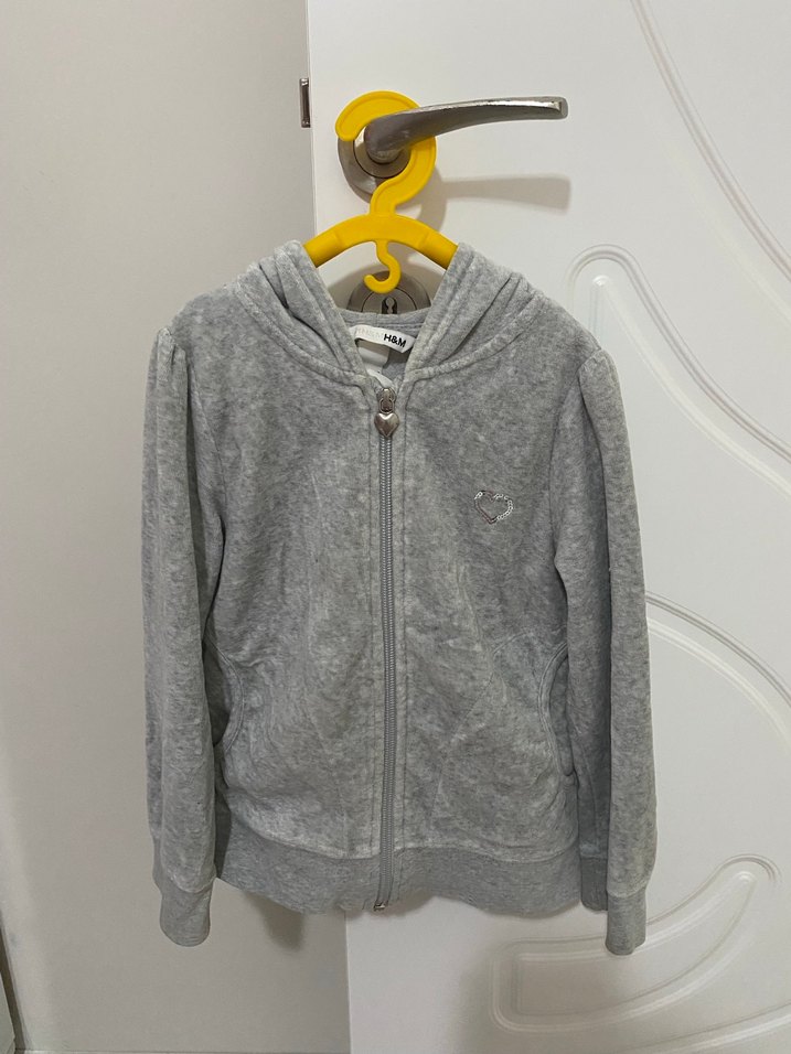 5-6 yaş Kız çocukları için uzun kollu, kapüşonlu ve fermuarlı, yumuşak ve kadife kumaştan yapılmış sade gri sweatshirt. Sokak stili için uygun. ✨✨