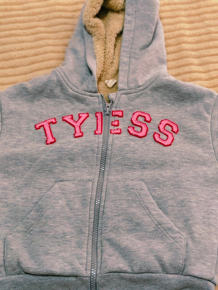 Kız çocukları için kapüşonlu, uzun kollu ve fermuarlı, yumuşak ve sıcak kumaştan yapılmış, ön kısmında nakışlı yazı bulunan dar kesim sweatshirt.Mont olarak da kullanılabilir.Bir kaç ay kullanılmıştır sorunsuz.3 4 yaşa uygundur.Crop tarzında uzun değildir.