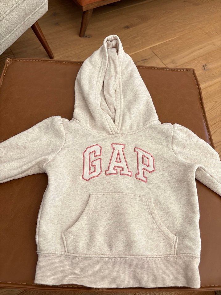 Gri renkli, uzun kollu ve kapüşonlu kız çocuk sweatshirtü. Üzerinde baskılı GAP logosu ve fermuarlı detay bulunur. Sıcak tutan yumuşak kumaştan üretilmiştir.