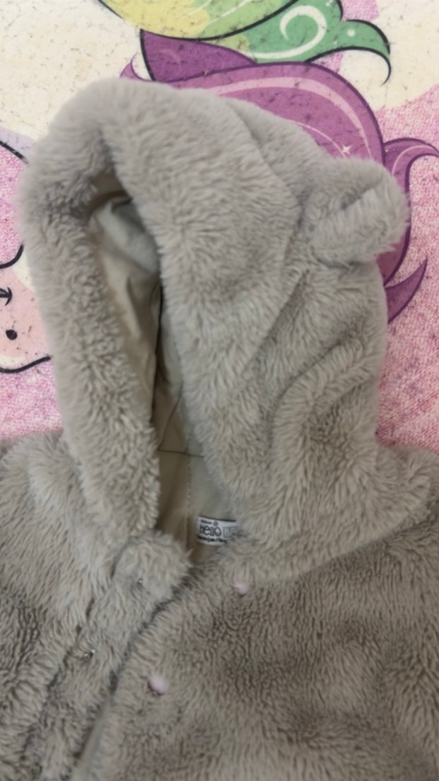 Yumuşak ve sıcak gri fleece kumaştan yapılmış, kapüşonlu ve kürk detaylı, yenidoğan bebeğim için alındı bir dahada kaldı e bebekten alınmıştır yenidoğan uyumludur