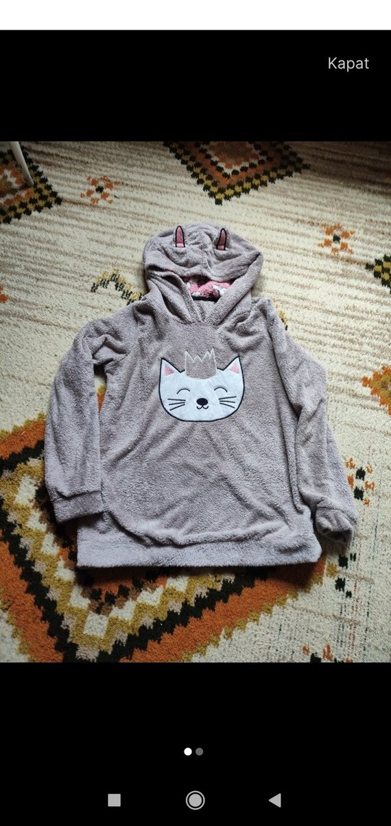 Gri renkte, uzun kollu kapüşonlu kız çocuk sweatshirtü, yumuşak ve sıcak peluş kumaştan üretilmiştir. Kapüşonunda kürklü detaylı baskılı kedi yüzü bulunur.