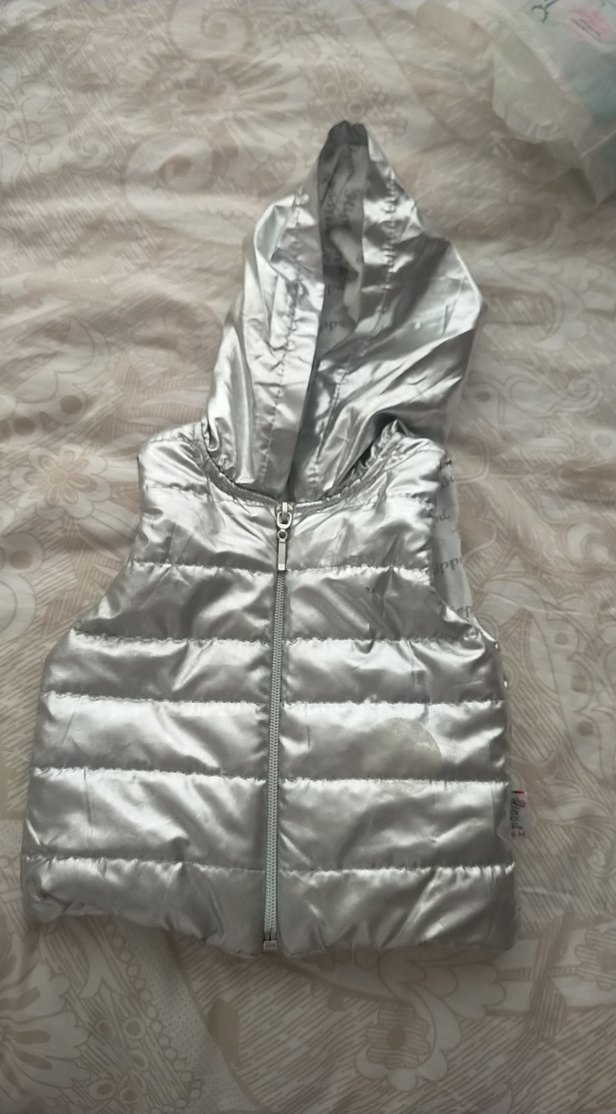 Kız çocukları için kapüşonlu, fermuarlı ve şişme modelde gri yelek. defosu yoktur