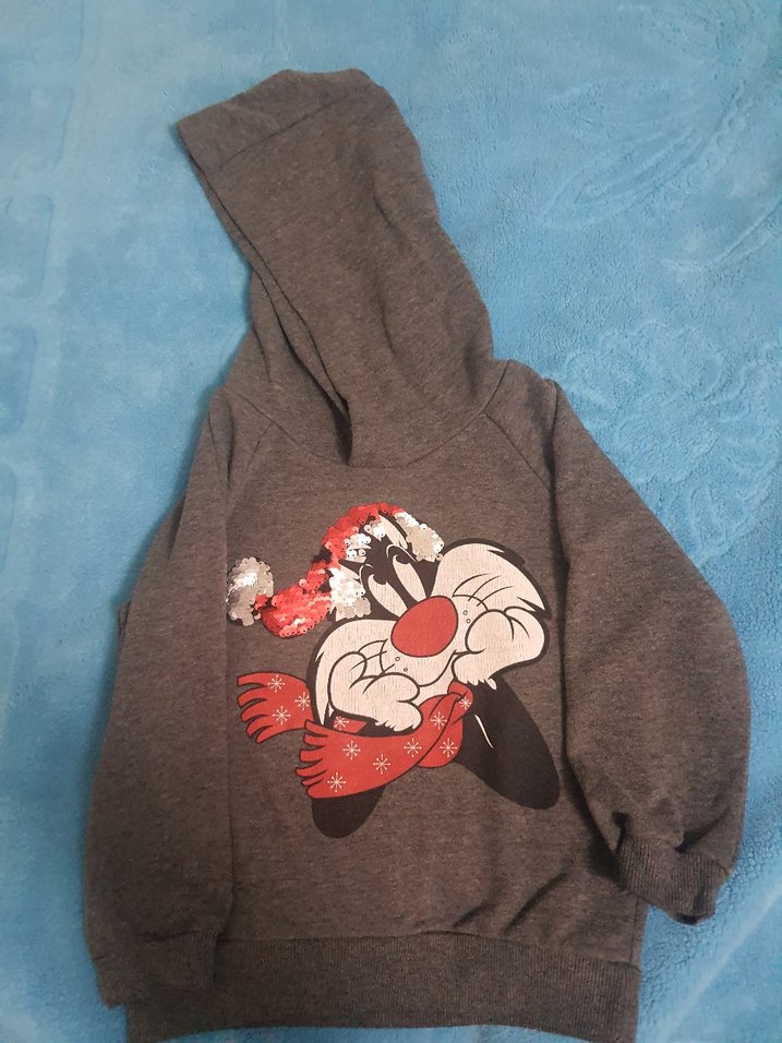 Gri renkli, kapüşonlu ve uzun kollu, kız çocuklar için fitted kesim sweatshirt. Yumuşak ve sıcak kumaştan, örme detaylı ve önünde baskılı desen bulunur.