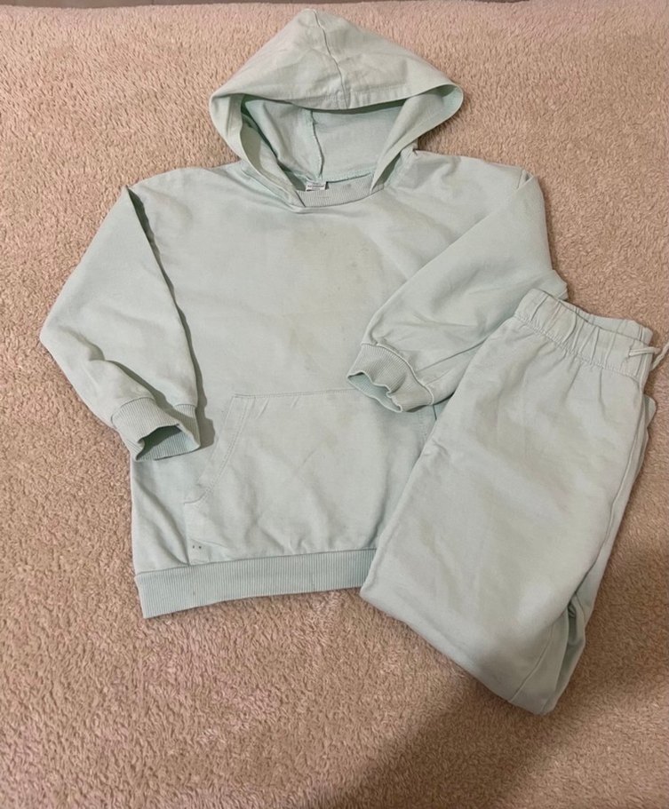 Kız çocuk için yumuşak kumaştan, bol kesim gri kapüşonlu sweatshirt ve eşofman takımıdır. Uzun kollu ve kapüşonlu, rahat bir tasarıma sahiptir.