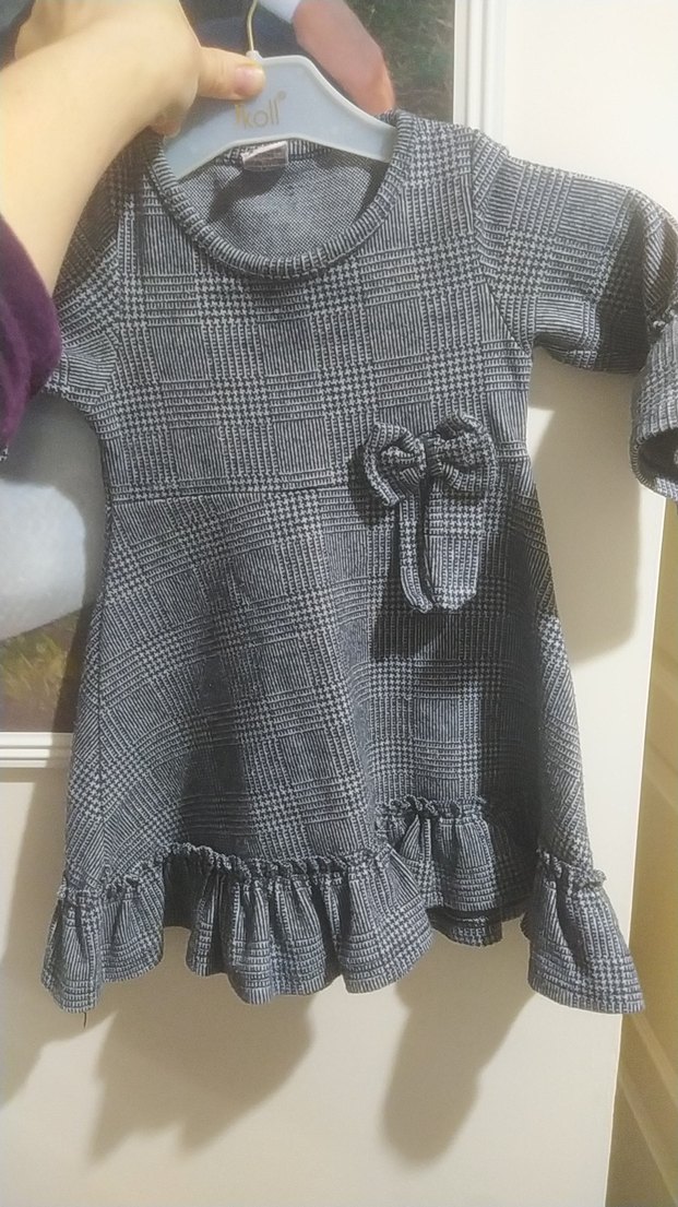 Kız Çocuk Gri Kareli Uzun Kollu Elbise 2yaş uyumludur