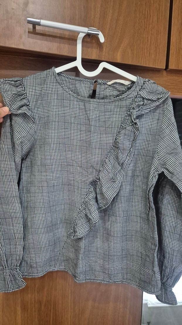 Kız çocukları için keten kumaştan yapılmış, bol kesim ve uzun kollu gri bluz. Fırfır detayları ve yuvarlak yakasıyla dikkat çeker. Ben kilo almadan önce S beden giyiyorken giymiştim birkaç kez. Zayıf bayanlar da tercih edebilir.