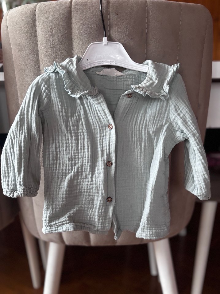 Gri keten kumaştan, düğmeli, uzun kollu ve yakalı kız çocuk bluzu. Salaş kesimi ve bohem tarzıyla dikkat çeker.