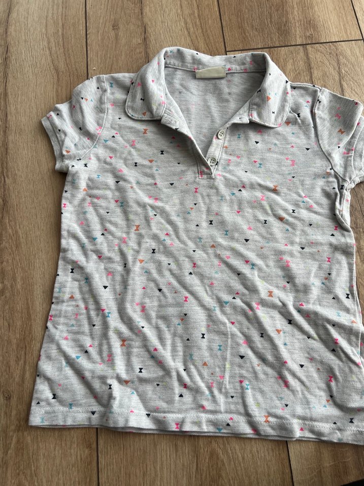 Pamuklu, düğmeli, kısa kollu ve yakalı kız çocuk gömleği. Gri zemin üzerinde renkli küçük desenler bulunur, bol kesim rahat kullanım sağlar.