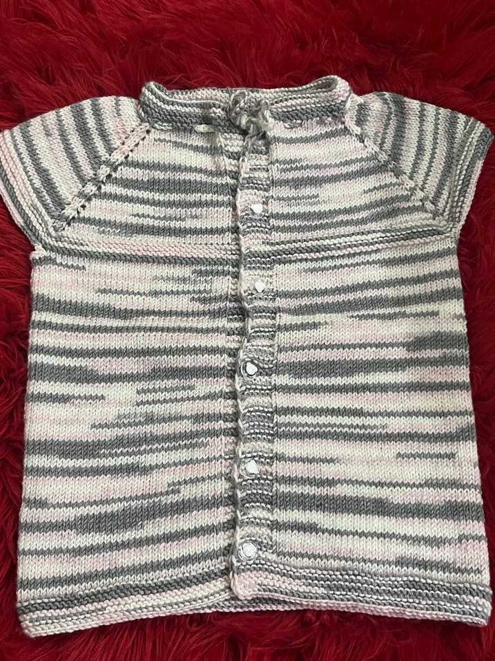 Kısa kollu, fitted kesim kız çocuk hırkası, yumuşak örme kumaştan yapılmış, gri bohem tarzında ve düğmeli ön kısmı ile dikkat çekiyor.