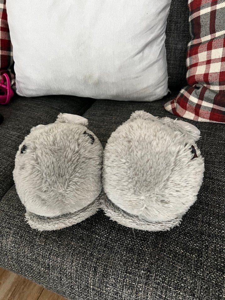Kız çocukları için gri renkte, kürklü ve işlemeli desenli sıcak ev terlikleri, sokak stili konforunda.