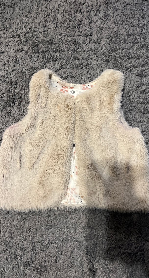 Kız çocuklar için kolsuz, yumuşak kürk detaylı gri yelek. Nakışlı ve dar kesim, sıcak tutan kumaştan üretilmiştir.