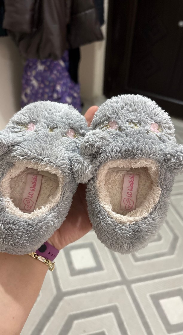 Kız çocukları için gri nakışlı detaylara sahip, yumuşak kürklü astarlı sıcak terlikler. Soğuk günlerde konforlu kullanım için fleece kumaş kullanılmış. Trendy casual tarzına uygun.