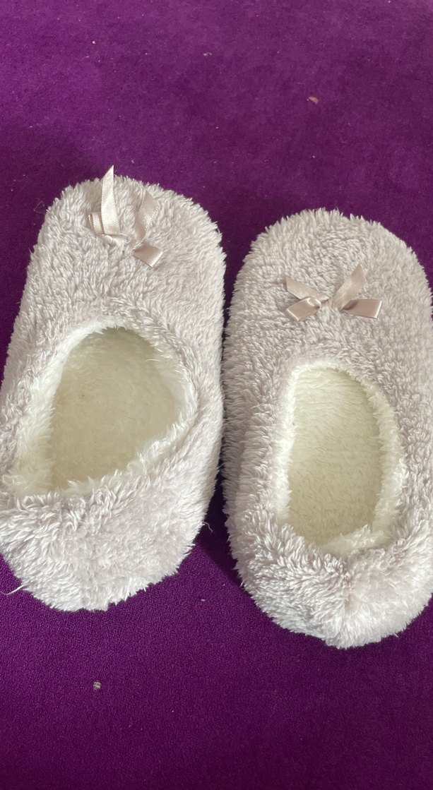Kız çocukları için gri renkte, kürk detaylı ve küçük kurdeleli, yumuşak ve sıcak ev terliği.