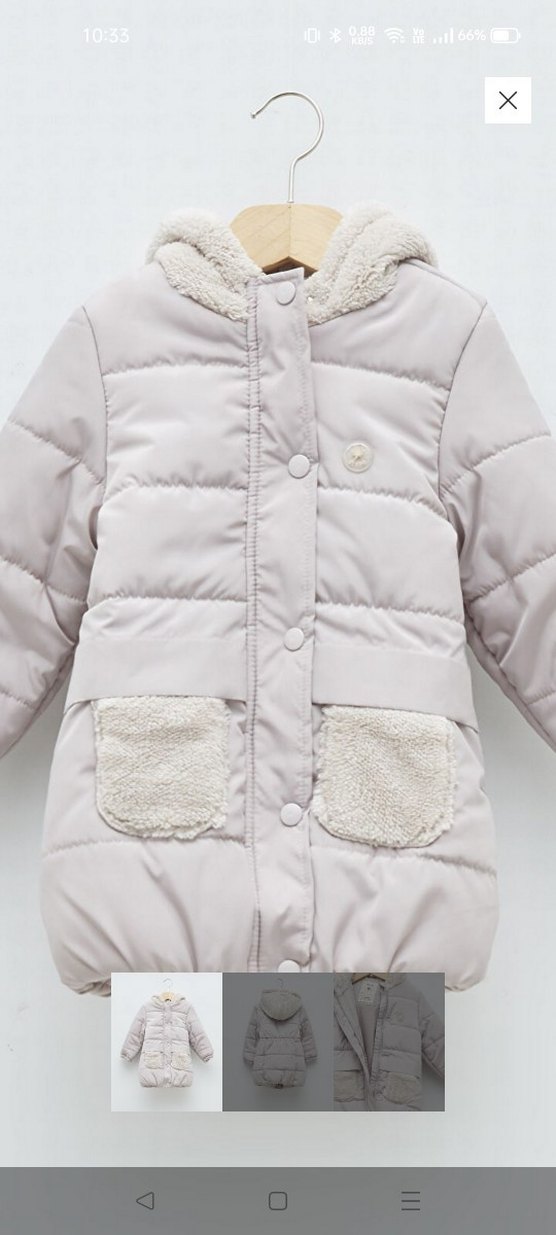Fitted kesim, gri renkli, kürklü detaylı ve yumuşak fleece astarlı kız çocuk ceket. Notch yakalı ve baskılı desenlidir, streetwear tarzına uygundur. Su lekesi gibi bir leke vardır.fiyata yansıtılmıştır.