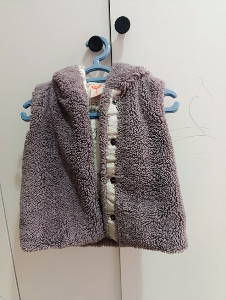 Kız çocukları için gri renkte, kürklü ve nakışlı detaylara sahip, kolsuz yelek. Notlu yakalı, düğmeli ve dar kesimdir, rahat ve şık bir görünüm sunar.
