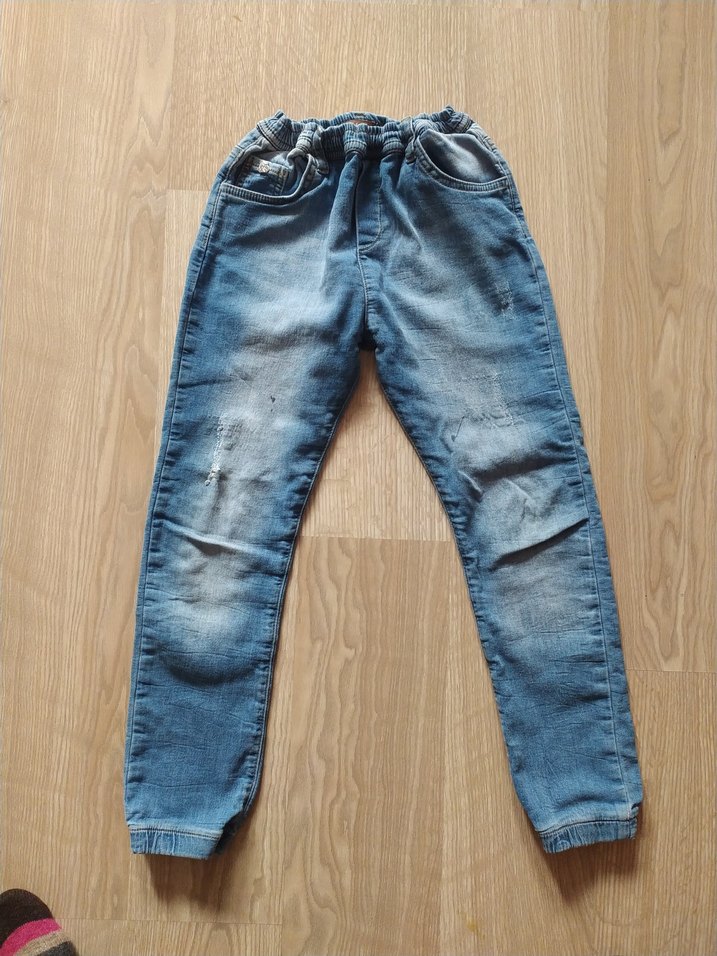 Kız çocuklar için bol kesim, tokalı bel detaylı gri-mavi kot pantolon. Rahat ve desen içermeyen sokak stili. bacağında kalem lekesi var çıkartmaya uğraşmadım