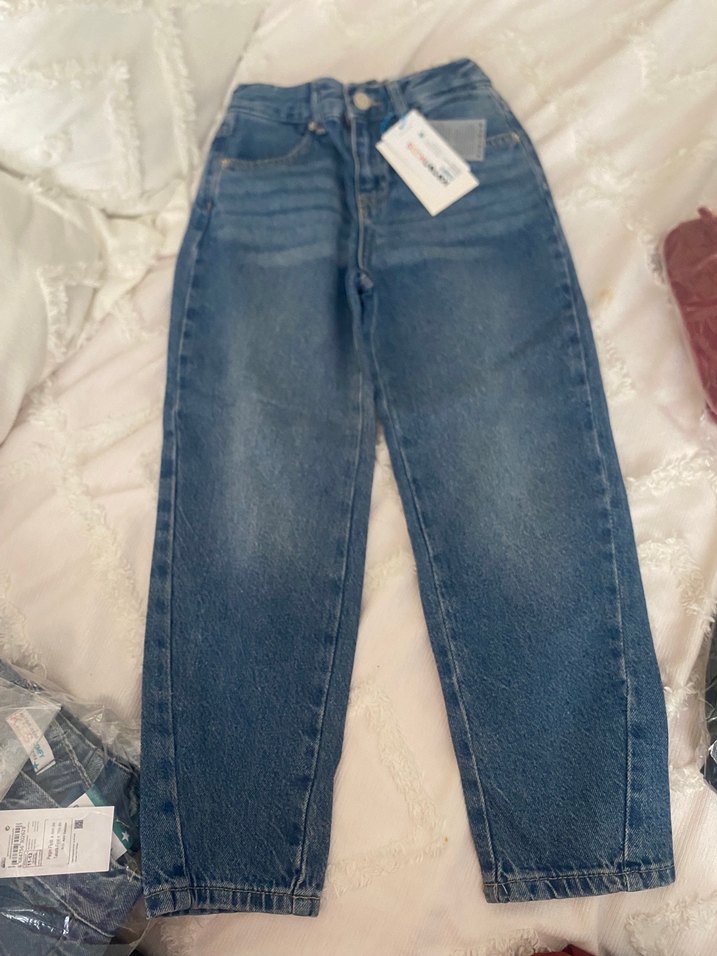 Gri mavi tonlarda, bol kesim kız çocuk denim pantolon, rahat sokak stili ve zahmetsiz şıklık sunar.