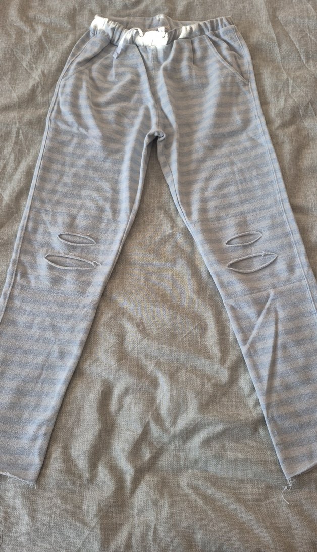 Gri renkli, bol kesim kız çocuk dokuma pantolon, dizlerde yırtık detayları bulunur. Rahat ve trend sokak stili görünümü sunar. Kızım sevmediği için bir iki kez giyildi.Gayet iyi durumda.10-11 yaş Panço markadır.
