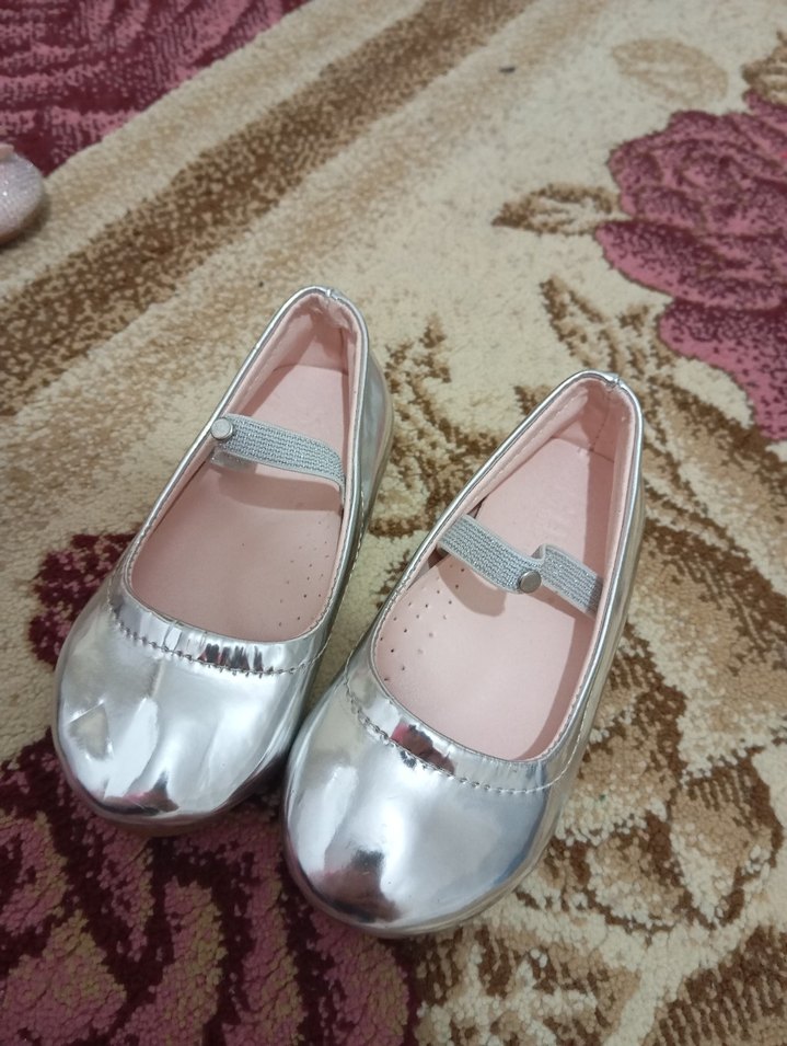 Kız Çocuk Gri Metalik Tokalı Babet