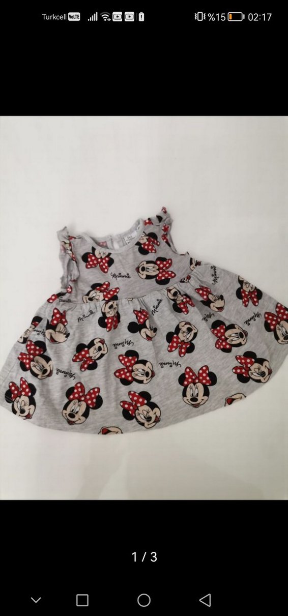 Kız Çocuk Gri Minnie Mouse Baskılı Elbise