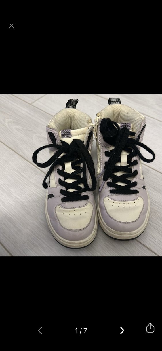 Kız çocukları için bağcıklı, mor ve gri renk kombinasyonlu spor ayakkabılar. Kauçuk tabanlı, rahat sokak stili sneakers.