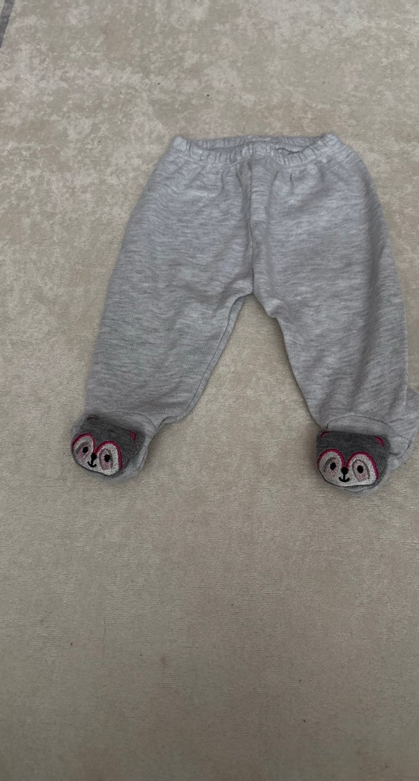 Kız çocuklar için yumuşak ve sıcak kumaştan, nakışlı ve kürklü detaylı bol kesim gri pantolon.
