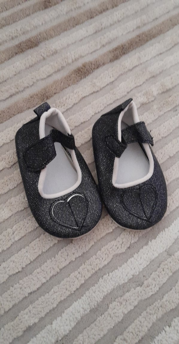 Gri renkte, nakış desenli ve cırtlı kayışlı kız çocuk babetleri. Kauçuk malzemeden yapılmıştır, trendi günlük gotik stile uygundur. sayili kullanildi civilden alindi