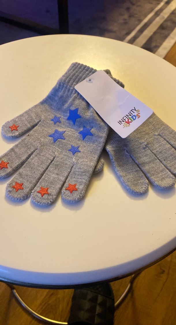 Gri renkli, nakışlı yıldız desenli örgü kız çocuk eldivenleri, yumuşak polar astarlı, sokak tarzı için uygun. ⭐