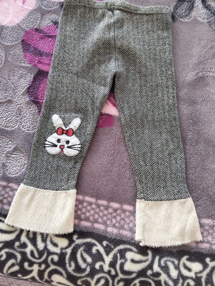 Nakışlı desenlere ve bileklerde kürk detaylarına sahip gri kız çocuk sweatpant, rahat kesimle konfor sunar. kız çocuk tayt temiz kullanıldı