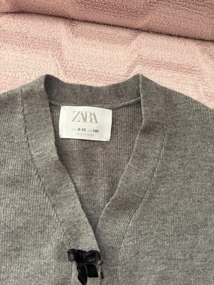 Gri renkli, nakış detaylı uzun kollu triko hırka. Rahat bol kesimi ve yumuşak dokusuyla Zara markasına ait. Bes altı yaşa daha uyumlu dur