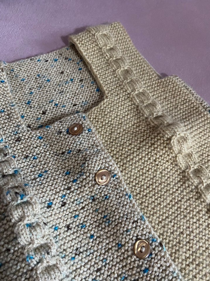 Kahverengi renkli, örgü dokulu askılı hırka. Bohem tarzda, düğme detaylı ve regular fit kesime sahip. El emeğidir hassas ciltler için uygun ip kullanılmıştır✨