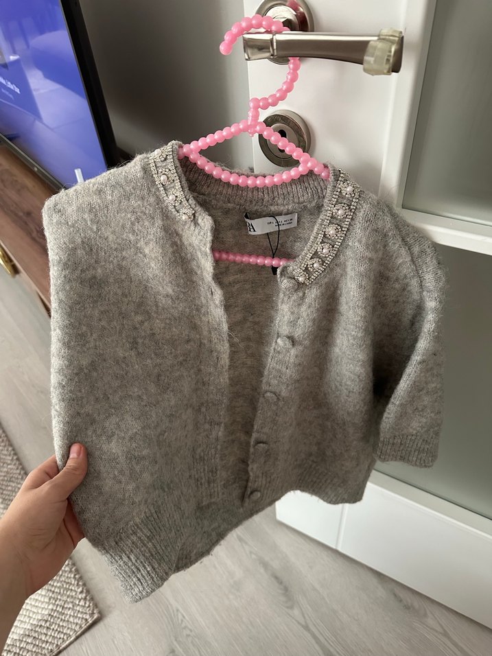 Gri renkli, uzun kollu ve bol kesim kız çocuk örgü hırka. Düz ve sade tasarımıyla normcore tarzını yansıtır.
