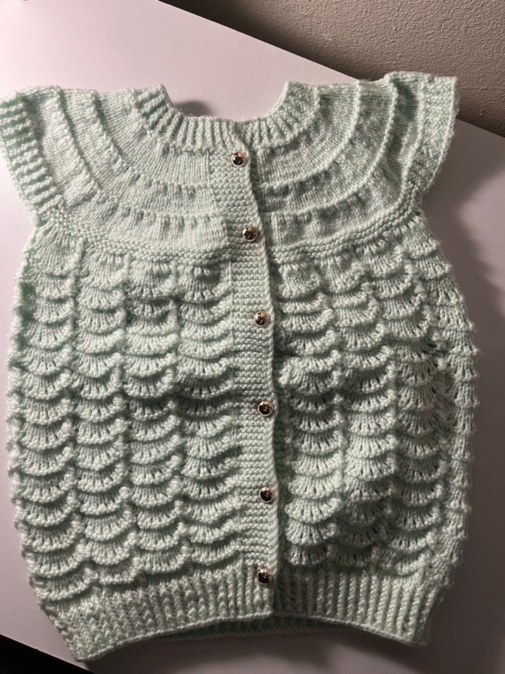 Vintage tarzda, gri renkte, kız çocukları için kolsuz, yuvarlak yaka, örgü ve düğmeli yelek. Rahat ve bol kesimdir.