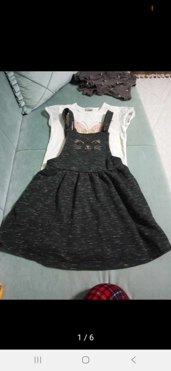 Kız çocukları için askılı, salaş kesim ve yuvarlak yaka, ince kedi yüzü detayıyla trend günlük tarzda elbise. 70 cm boyu