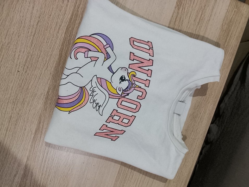 Pamuklu, gri renkli kız çocuk tişörtü, kısa kollu ve bisiklet yaka. Üzerinde unicorn baskısı ve kolay giyim için cırt cırt bulunur. iki adet fiyatıdır