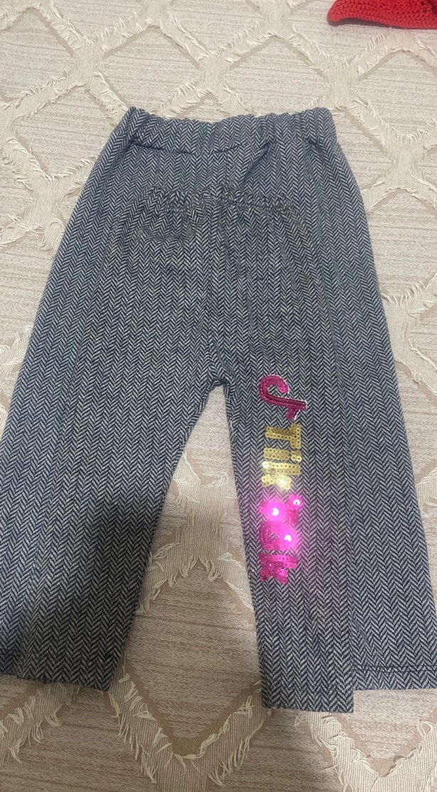 Kız çocukları için fitted kesim gri denim tayt, parlak baskılı deseniyle trendy casual sokak stili için uygundur. ✨