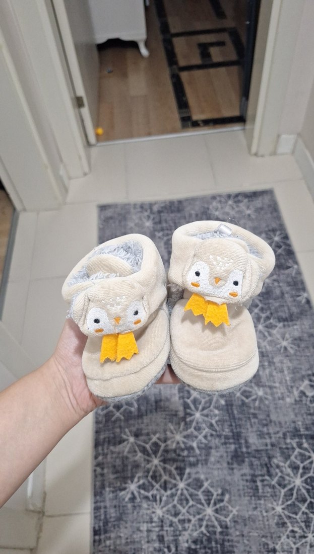 Kız çocukları için yumuşak peluş kumaştan, kürklü ve nakış detaylı gri ev terlikleri. Rahat ve gündelik tarzda.