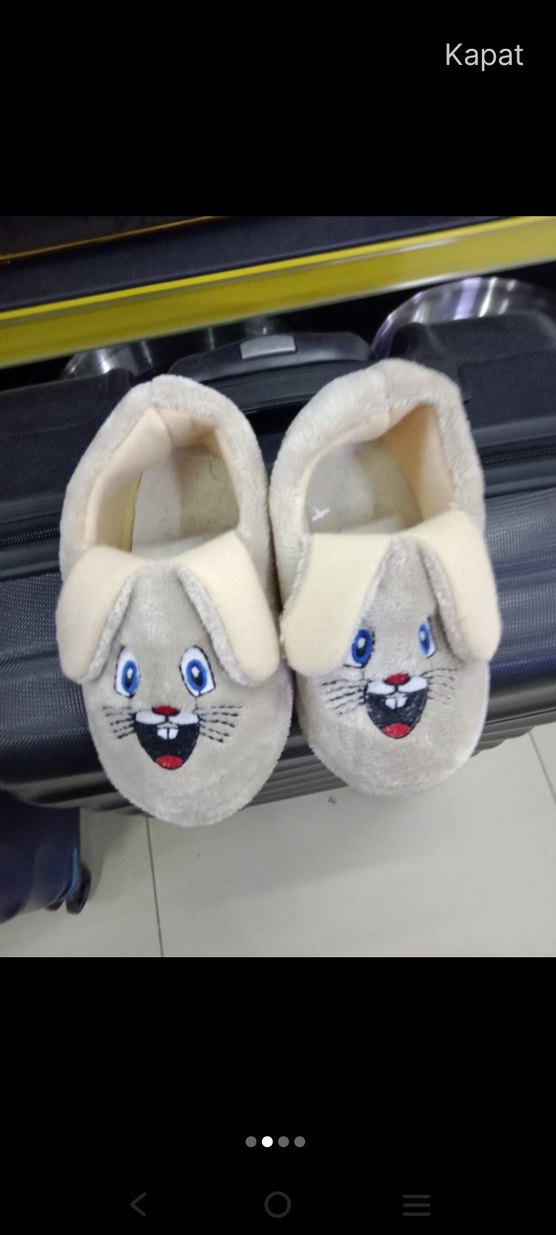 Kız çocukları için gri renkte, yumuşak ve sıcak peluş kumaştan yapılmış, kürklü ve tavşan desenli rahat ev terliği.