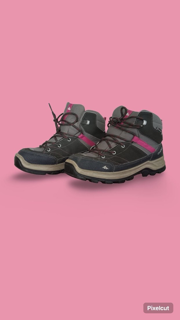 Kız çocukları için gri ve pembe renklerde, rubber tabanlı, waterproof bot. 2-3 defa giyildi hiç bir yırtığı yok, sıfır gibi.