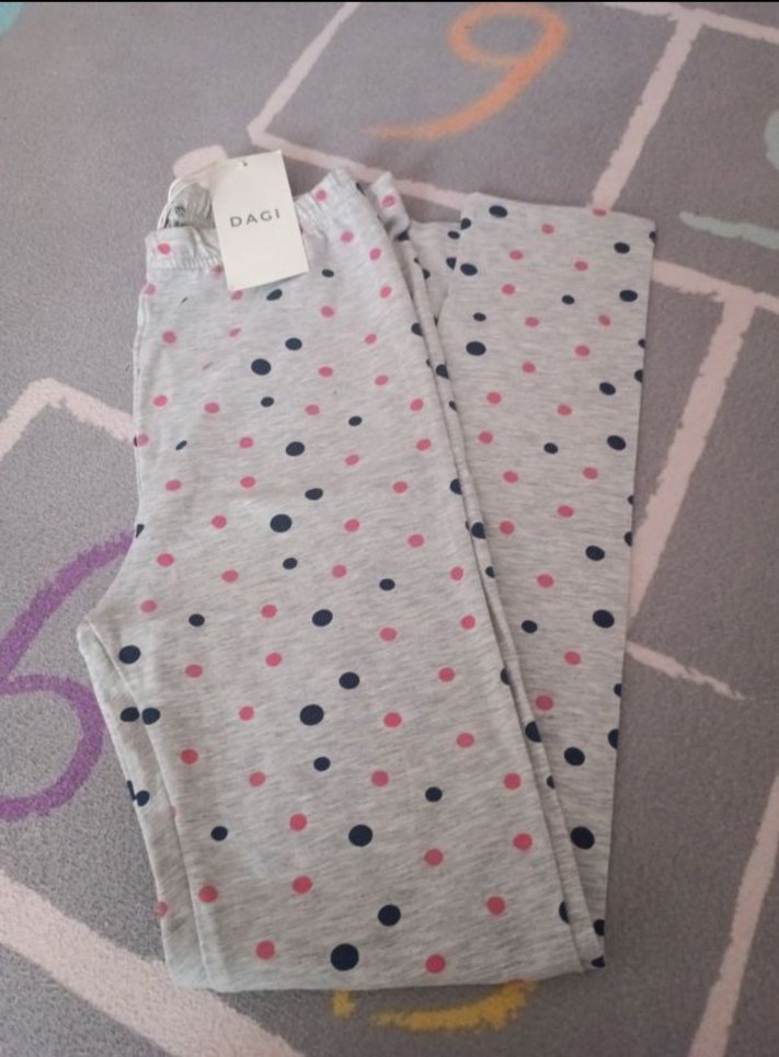 Kız çocukları için pamuklu, gri renkli, puantiyeli, elastik bel bandına sahip dar kesim tayt. Rahat ve günlük sokak stili için uygundur.