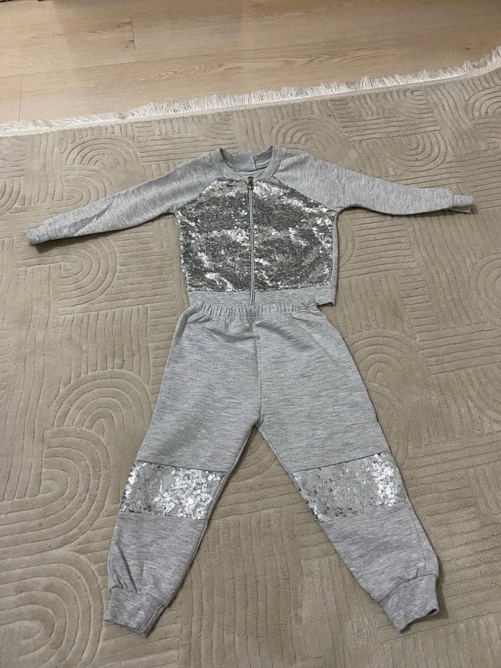 Kız Çocuk Gri Pul İşlemeli takım