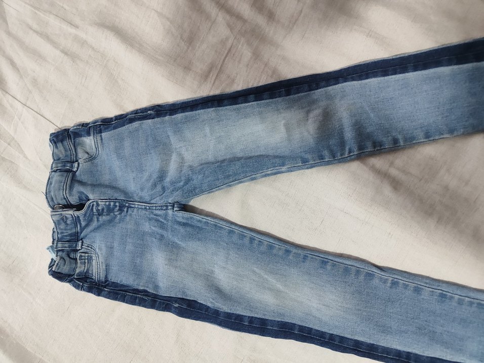 kız çocuklar için regular fit kot pantolon, düğmeli yanlardan lastikli, trend ve sade bir tasarıma sahip gri-mavi renktedir.