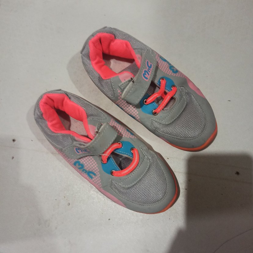 Gri renkli kız çocuk spor ayakkabısı, renkli baskılar ve kolay kullanım için cırt cırtlı bant içerir. Kauçuk tabanlı, sokak modasına uygun.