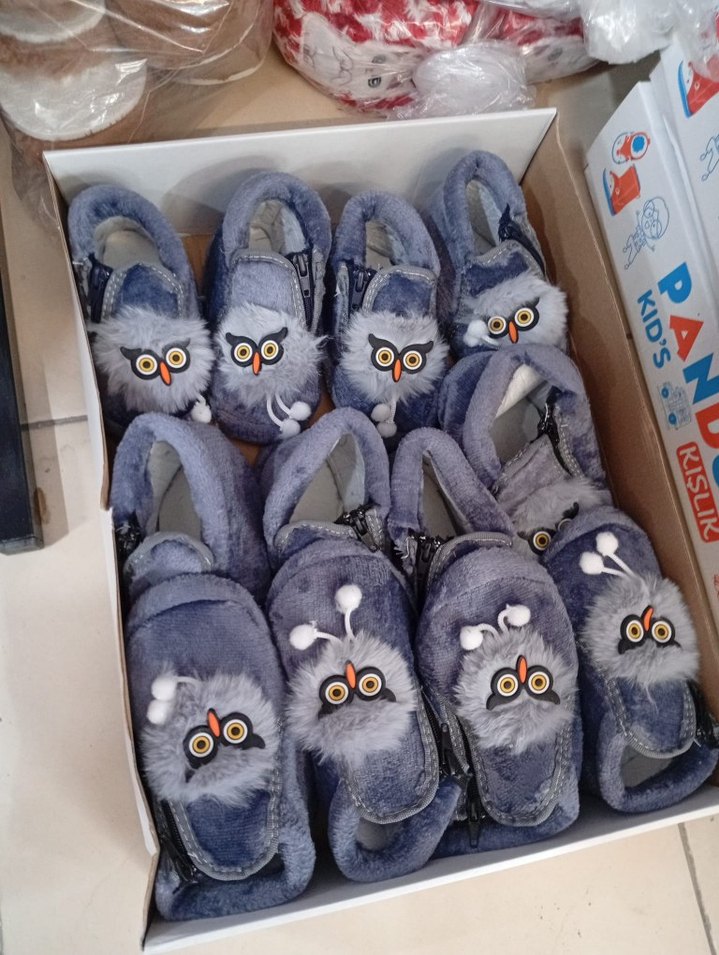 Bu gri kız çocuk terlikleri, kürklü detaylar ve baskılı baykuş deseni ile sıcaklık ve trend sokak stili sunar. 21 den 30 noya kadar mevcut