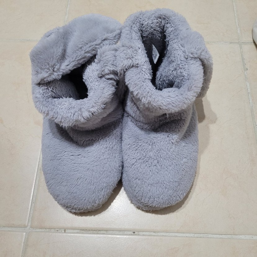 Kız çocukları için gri renkte, peluş ve kürk detaylı sıcak terlikler. Düz ve sade normcore tarzıyla konfor sağlar. Çok az kullanıldı.