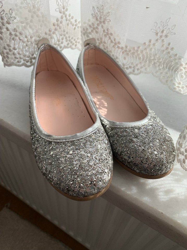 Gri simli kız çocuk babetleri, modern klasik tarzda, rahat kauçuk tabanlıdır. ✨
