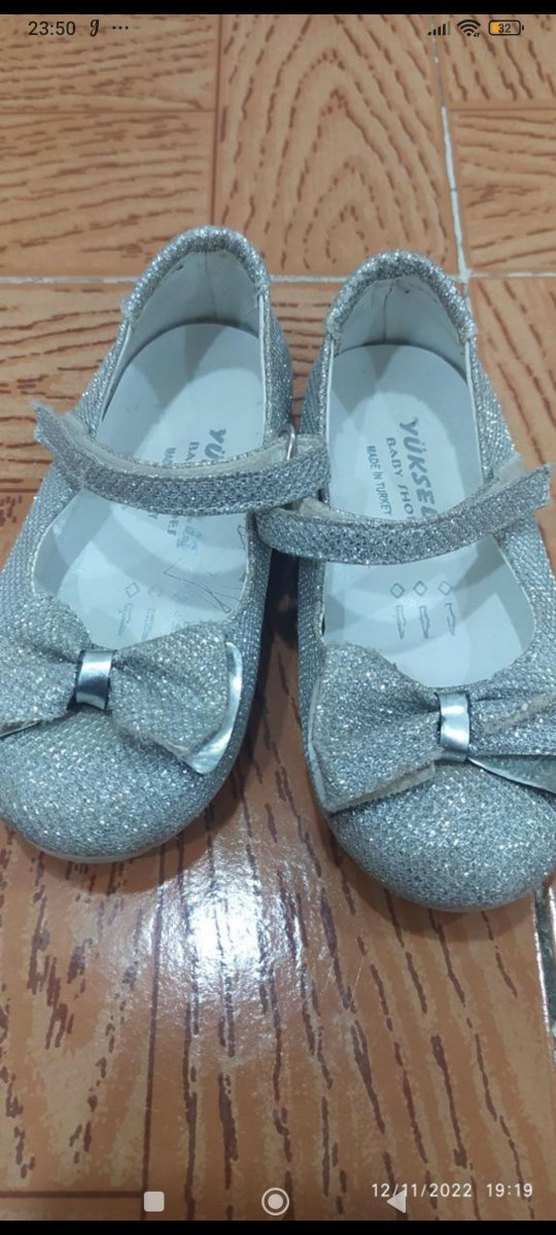Kız Çocuk Gri Simli Babet Ayakkabı