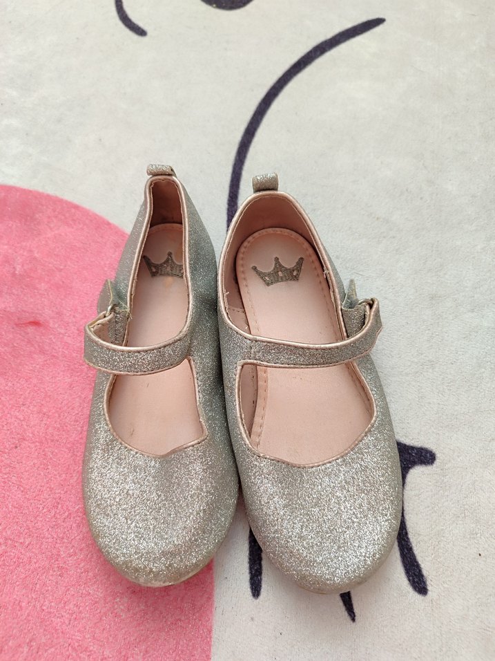 Kız Çocuk Gri Simli Babet Ayakkabı
