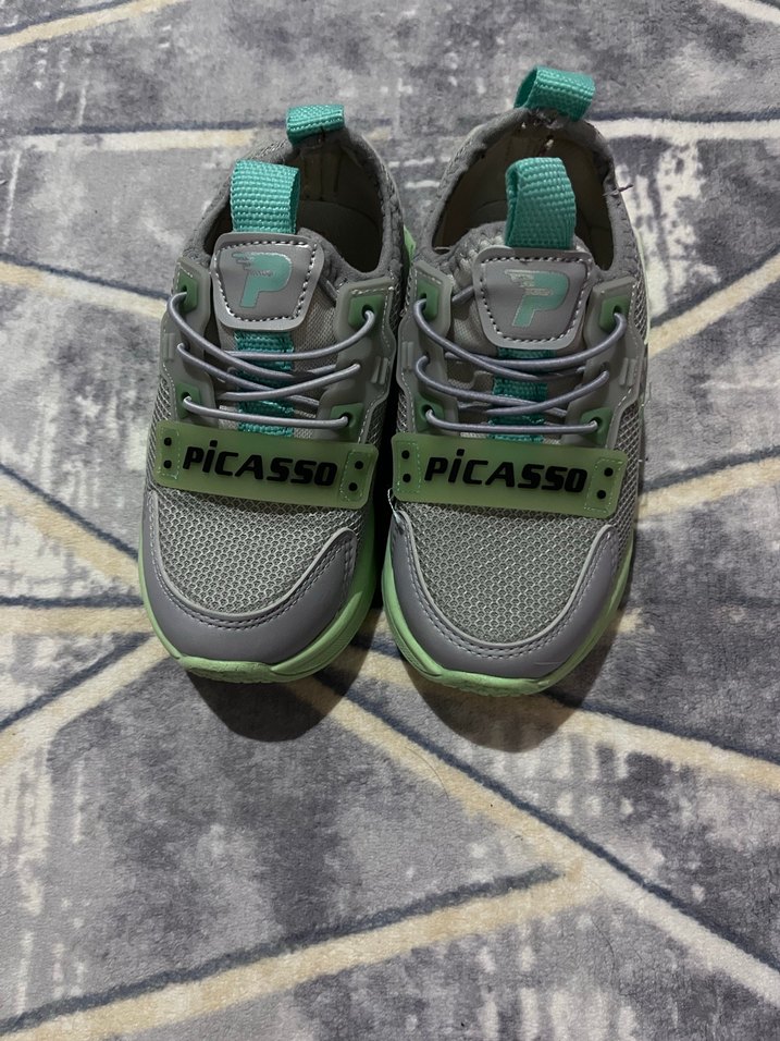 Gri renkli, kız çocuk spor ayakkabısı. Kauçuk tabanlı ve cırt cırtlı, rahat sokak stili için uygundur.